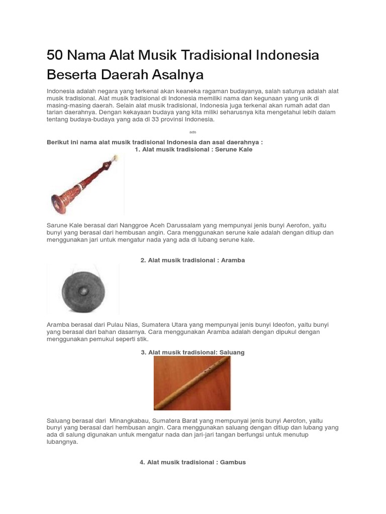 33 Alat Musik Tradisional Indonesia Dan Asal Daerahnya from image.slidesharecdn.com Berikut ini penjelasan 35 alat musik tradisional indonesia dari berbagai provinsi secara lengkap dalam seni musik, suku batak memiliki beragam jenis alat musik tradisional dengan aramba sebagai ikon budayanya. Indonesia merupakan negara yang mempunyai beragam alat musik tradisional. Bukan hanya alat musik, di setiap daerah bisanya juga mempunyai lagu daerah, pakaian adat dan juga seni tari yang menjadi ciri khas daerah. Salah satunya adalah jenis alat musik daerah atau tradisional yang tersebar di segenap daerah tiap tiap provinsi. Alat musik tradisional aceh a. Oleh sebab itu, ragam budaya yang dimiliki pun sangat banyak. Alat musik hampir di seluruh wilayah indonesia mempunyai alat musik tradisional yang khas dan unik. Alat musik tradisional merupakan bagian dari sejarah perkembangan musik itu sendiri.